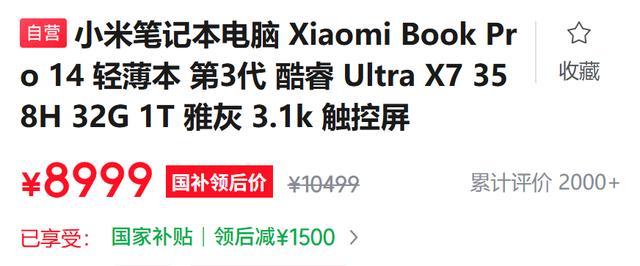 售价10499元的小米Pro14笔记本电脑,X7顶配版本吃满国补,8999元到手。
